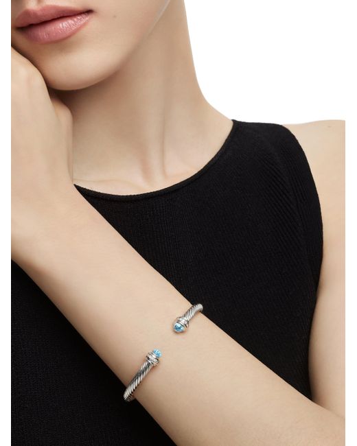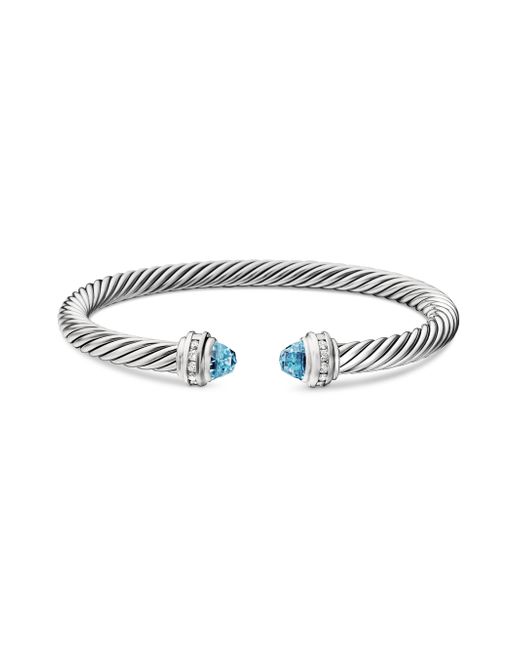 David Yurman's artistic signature, Cable began as a bracelet that he hand-twisted from 50 feet of wire. For the past 30 years, he has evolved the twisted helix into a myriad of designs. Sterling silver Pavé diamonds, 0.18 total carat weight Gemstone Bracelet, 5mm Made in Italy. Lsd Jewelry - David Yurman > David Yurman > Saks Fifth Avenue > Barneys. David Yurman. Color: Blue Topaz. Size: XS.