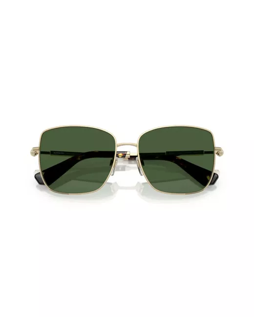 gold-tone metal square frame green tinted lenses straight arms curved tips These glasses come with a protective case.