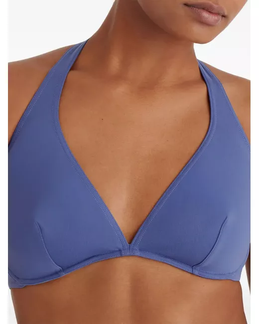 lavender blue halterneck tie fastening rear clasp fastening underwire cup Be mindful to try on swimwear over your own garments.