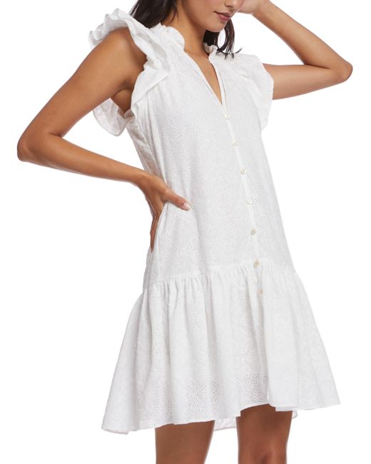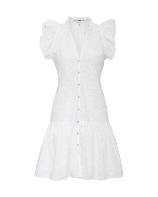 Robert Graham's Savannah flutter-sleeve minidress features a breathable eyelet construction and playful flounce hem. Band collar Plunging V-neck Flutter sleeves Button front Pulls over 100% cotton Dry clean Imported SIZE & FIT About 36.5" from shoulder to hem Model measurements: 5'10" tall Model is wearing a US size Small. Modern Collections - Modern Coll > Robert Graham > Saks Fifth Avenue > Barneys. Robert Graham. Color: White. Size: Small.