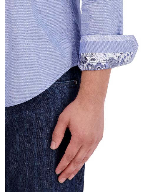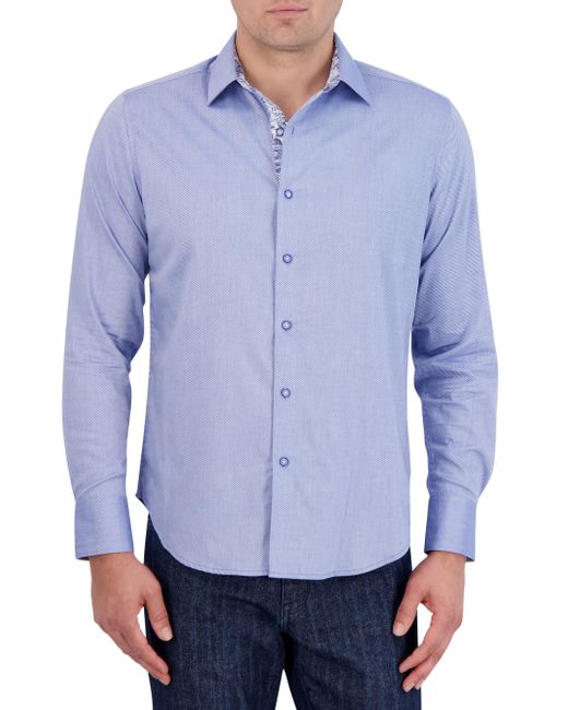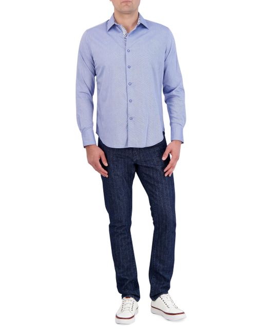 This dapper Robert Graham Wayfarer button-front shirt exudes timeless sophistication with its double button cuff and contrasting print at the collar and full placket. Point collar Long sleeves, barrel cuffs Shirttail hem Button-front placket 97% cotton/3% spandex Machine wash Imported SIZE & FIT About 34'' from shoulder to hem Model measurements: 6'2" tall, 40" chest, 31" waist Model is wearing a US size Medium. Mens Modern Coll & Outer - Contemp Classic Collecti > Robert Graham > Saks Fifth Avenue > Barneys. Robert Graham. Color: Navy. Size: Small.