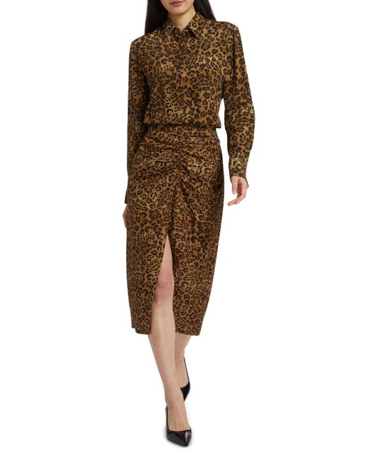 Robert Graham's Brynn skirt features a chic leopard print and is cut for a flattering tapered silhouette. Center front ruching and a slit opening complete the design. Back zip closure 61% cotton/21% wool/18% silk Dry clean Imported SIZE & FIT About 32" from shoulder to hem Model measurements: 5'10" tall Model is wearing a US size 4. Modern Collections - Modern Coll > Robert Graham > Saks Fifth Avenue > Barneys. Robert Graham. Color: Brown. Size: 2.