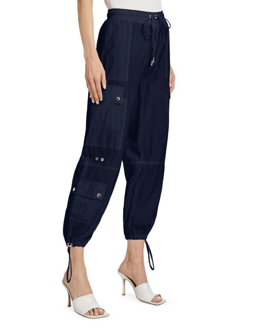 The Nitsan pants from Cinq à Sept are finished with a drawstring waist and utility pockets. Drawstring waist Side seam pockets Utility pockets Drawstring cuffs 100% polyester Dry clean Imported SIZE & FIT Rise, about 10.75" Inseam, about 26" Leg opening, about 19" Model measurements: 5'10" tall Model is wearing a US size Small ABOUT THE BRAND Inspired by the radiant, magical hours between 5 and 7 PM-which is what the label's French name translates to-founder Jane Siskin designs sophisticated, feminine pieces for both workweek and the weekend. The designer's silhouettes also play with volume and eye-catching trimmings-perfect for cocktails or a special night out. Contemporary Sportswear - Cinq A Sept > Cinq à Sept > Saks Fifth Avenue > Barneys. Cinq à Sept. Color: Navy. Size: XXS.