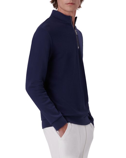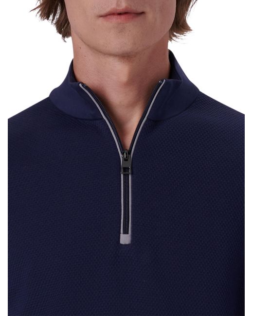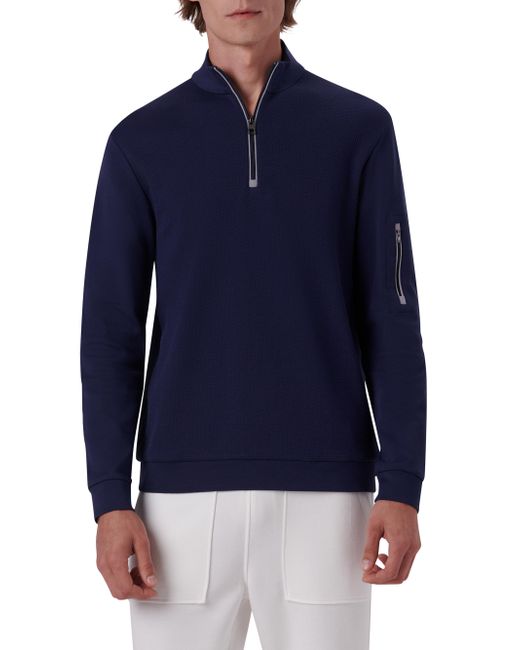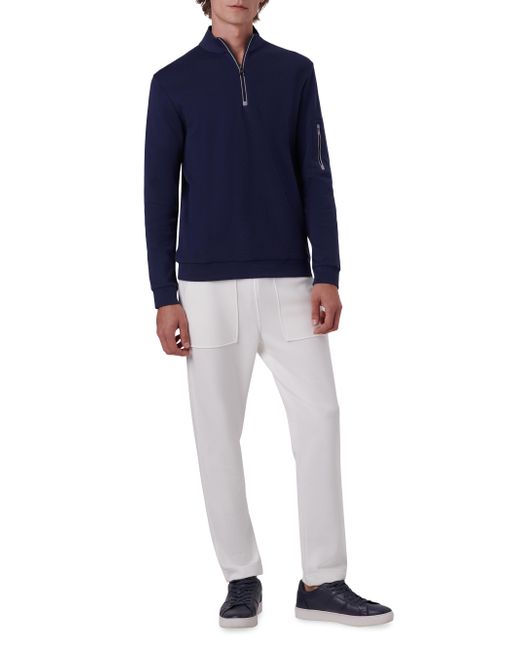 Crafted of cotton, this Bugatchi jacket is detailed with a two-tone trim along the neckline and sleeve cuffs. Stand collar Long sleeves Sleeve zipper pocket Quarter-length zip Pullover style 100% cotton Machine wash Imported SIZE & FIT About 30" from shoulder to hem Model measurements: 6'2" tall, 40" chest, 31" waist, 37" inseam Model is wearing a US size 40R. Mens Modern Coll & Outer - Contemp Classic Collecti > Bugatchi > Saks Fifth Avenue > Barneys. Bugatchi. Color: Navy. Size: Small.