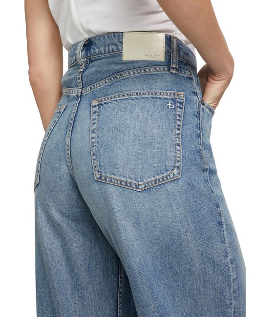 The Featherweight Sofie jeans from rag & bone are cut in a wide-leg silhouette with belt loops and five-pocket styling. Belt loops Five-pocket style Zip fly, button closure 64% cotton/36% tencel Machine wash Imported SIZE & FIT Rise: about 12" Inseam: about 33" Leg opening: 25.25 Model measurements: 5'10" tall Model is wearing a US size Small ABOUT THE BRAND In 2002, rag & bone founder Marcus Wainwright combined his British heritage with a downtown-New York aesthetic to set the tone for the label. At the heart of the edgy-yet-laid-back brand is its focus on quality craftsmanship and attention to detail. The epitome of cool, off-duty style, it's no wonder the signature second-skin denim is favored by many. Contemporary Sportswear - Denim And Bottoms > Rag & Bone > Saks Fifth Avenue > Barneys. rag & bone. Color: Beverly. Size: 29.