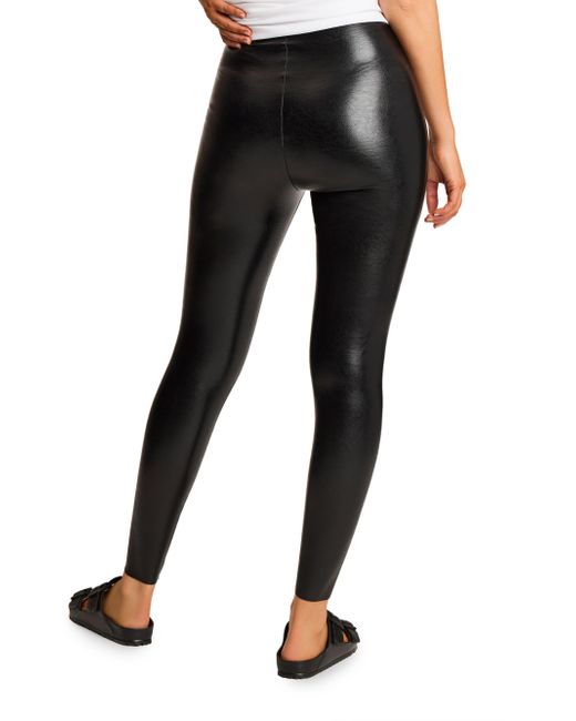 Crafted of faux leather, these leggings feature Commando's signature internal waistband and firming, smoothing fabric. Elasticized waistband Pulls on 55% polyurethan/ 44% viscose/ 1% elastane Waistband: 72% nylon. 28% elastane Machine wash Made in USA SIZE & FIT This style is constructed in a stretch weave with slight give Rise: about 12" Inseam: about 28" Leg opening: about 9" Model measurements: 5'10" tall Model is wearing a US size Small. Lingerie - Contemporary Collections > Commando > Saks Fifth Avenue > Barneys. Commando. Color: Black. Size: 14.