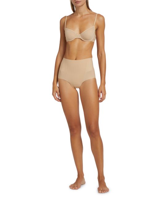 Crafted of a microfiber blend, Commando's Zone Smoothing high-rise briefs offer light-to-medium compression and extra-targeted smoothing through zoned panels for a seamless, wrinkle-free undergarment effect. Full back coverage Pulls on 70% nylon/30% elastane Machine wash Imported SIZE & FIT Model measurements: 5'10" tall Model is wearing a US size Small. Lingerie - Contemporary Collections > Commando > Saks Fifth Avenue > Barneys. Commando. Color: Brown. Size: XS.