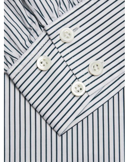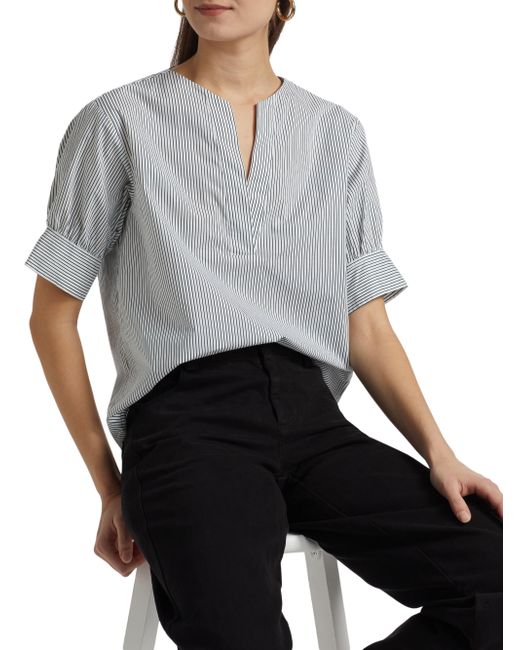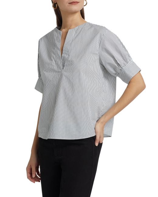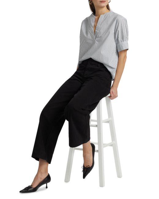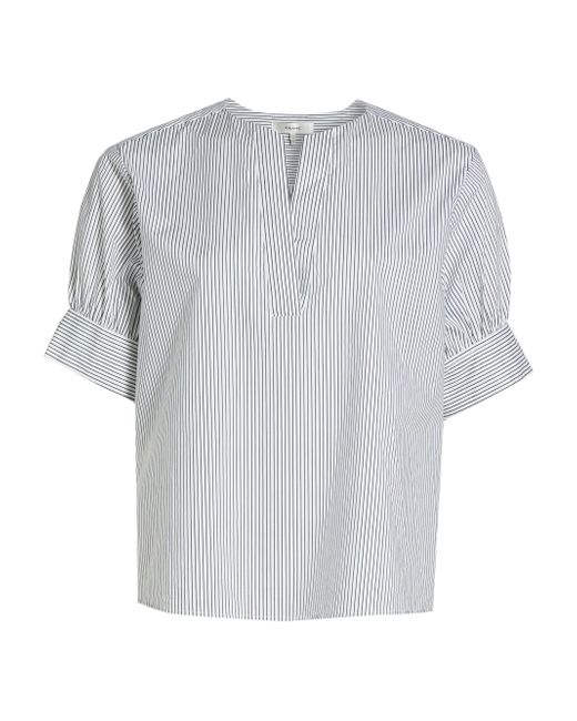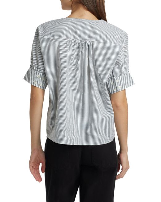 The V-neck top from Frame is rendered in striped cotton with smocked cuffs. V-neck Short sleeves, button cuffs Pulls over 100% cotton Machine wash Imported SIZE & FIT This style is designed for a boxy fit Measurements are taken from a US size Small About 23.5" from shoulder to hem Bust: about 42" Model measurements: 5'10" tall Model is wearing a US size Small ABOUT THE BRAND In 2012, Erik Torstensson and Jens Grede combined their California-modern point of view with a European sensibility to establish Frame. The ready-to-wear label, first known for its denim, has expanded to leather, cashmere and tailoring-all with an effortless ethos at the core. Focusing on quality fabrics and foundational dressing, the brand delivers chic everyday staples favored by Hollywood starlets and beyond. Contemporary Sportswear - Denim And Bottoms > Frame > Saks Fifth Avenue > Barneys. Frame. Color: Navy Multi. Size: XS.