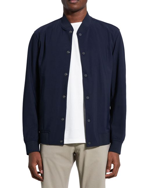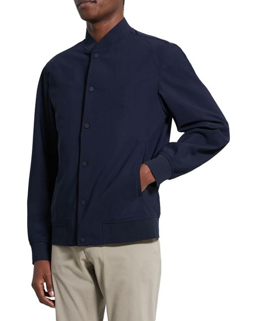 Made of a polyamide blend, this jacket features a standing collar, side slip pockets, and long sleeves with ribbed cuffs. Standing collar Snap-front closure Side slip pockets Long sleeves Ribbed hem & cuffs 73% polyamide/27% elastane Dry clean Imported SIZE & FIT About 28" from shoulder to hem ABOUT THE BRAND For two decades, Theory has nailed the art of polished dressing through its well-tailored pieces. Innovative fabrications and an elevated, minimalist aesthetic make the brand's separates a wardrobe main story season after season. Mens Modern Coll & Outer - Theory > Theory > Saks Fifth Avenue > Barneys. Theory. Color: Baltic. Size: Medium.