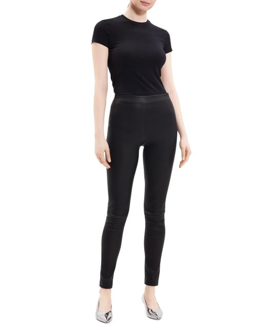 Theory's leggings are crafted of luxe lamb leather and feature a comfortable pull-on waistband. Pulls on 100% lamb leather Dry clean Imported SIZE & FIT Inseam, about 30" Model measurements: 5'10" tall Model is wearing a US size 4 ABOUT THE BRAND In 2000, founders Andrew Rosen and Elie Tahari launched Theory with a focus on innovative, comfortable stretch pants for women. Since then, the New York-based brand has become well-known for its mastery of polished, well-tailored separates for women and men. Contemporary Sportswear - Theory Sportswear > Theory > Saks Fifth Avenue > Barneys. Theory. Color: Black. Size: 00.