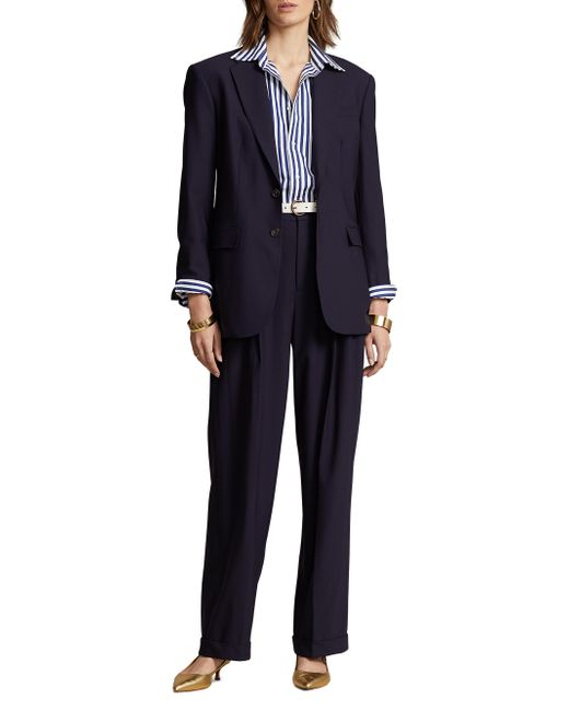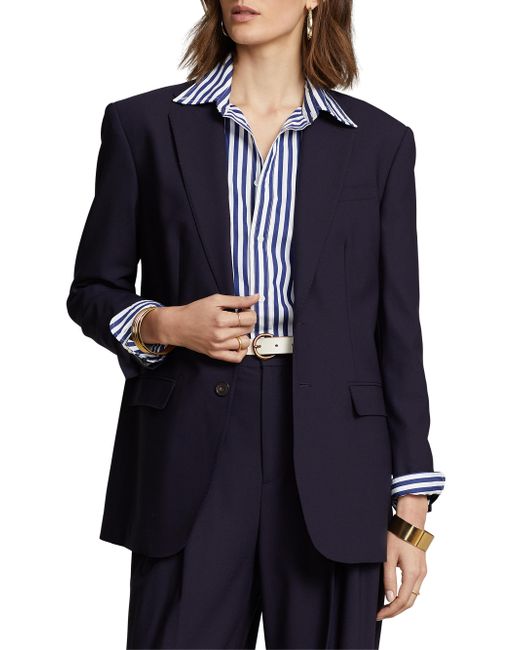 Polo Ralph Lauren's blazer is crafted of a luxurious wool blend. This layering style is detailed with classic notch lapels and front flap pockets. Notch lapels Long sleeves Front flap pockets Front-button closure 97% wool/3% elastane Lining: 100% viscose Dry clean Imported SIZE & FIT Model measurements: 5'10" tall Model is wearing US size 4 This brand fits slightly larger. Consider ordering a size down. Modern Collections - Polo Ralph Lauren > Polo Ralph Lauren > Saks Fifth Avenue > Barneys. Polo Ralph Lauren. Color: Navy. Size: 0.