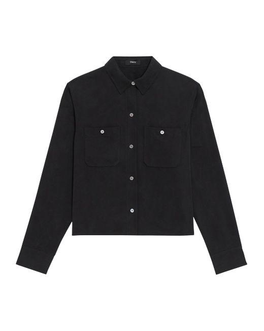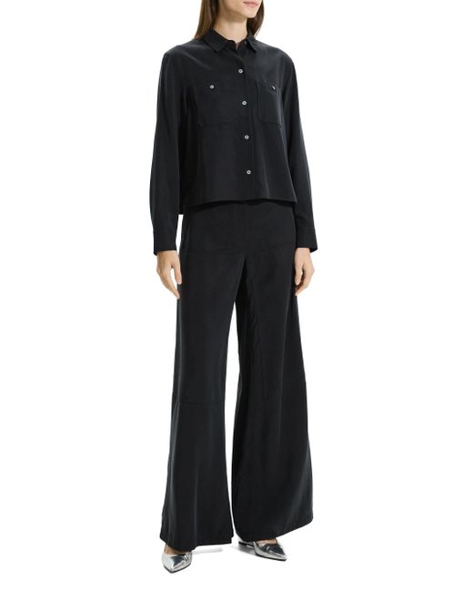 Cut for a boxy fit, the button-front shirt by Theory features a shirt collar, long sleeves, andutilitarian-inspired patch chest pockets. Shirt collar Long sleeves Patch chest pockets Button-front closure 100% lyocell Dry clean Imported SIZE & FIT This style is designed for a boxy fit About 21.5" from shoulder to hem Model measurements: 5'10" tall Model is wearing a US size Small ABOUT THE BRAND In 2000, founders Andrew Rosen and Elie Tahari launched Theory with a focus on innovative, comfortable stretch pants for women. Since then, the New York-based brand has become well-known for its mastery of polished, well-tailored separates for women and men. Contemporary Sportswear - Theory Sportswear > Theory > Saks Fifth Avenue > Barneys. Theory. Color: Black. Size: XS.