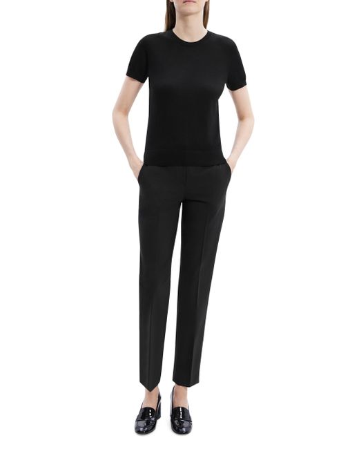Crafted of soft merino wool, Theory's basic T-shirt showcases a timeless crewneck and short sleeves. Crewneck Short sleeves Pulls over 100% merino wool Dry clean Imported SIZE & FIT About 22" from shoulder to hem Model measurements: 5'10" tall Model is wearing a US size Small. Contemporary Sportswear - Theory Sportswear > Theory > Saks Fifth Avenue > Barneys. Theory. Color: Black. Size: XS.