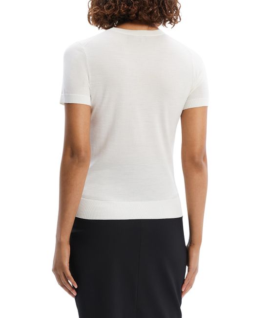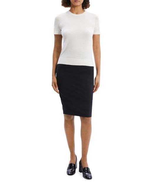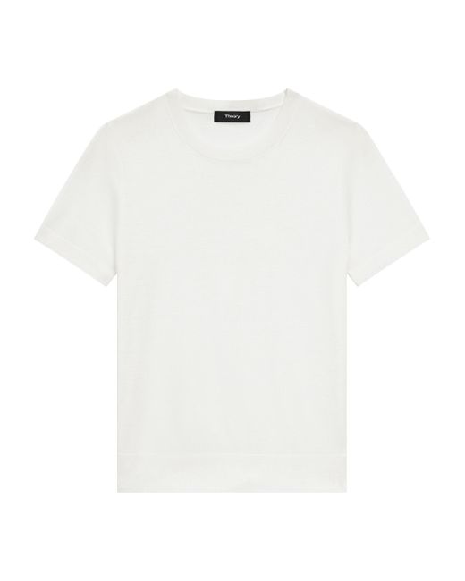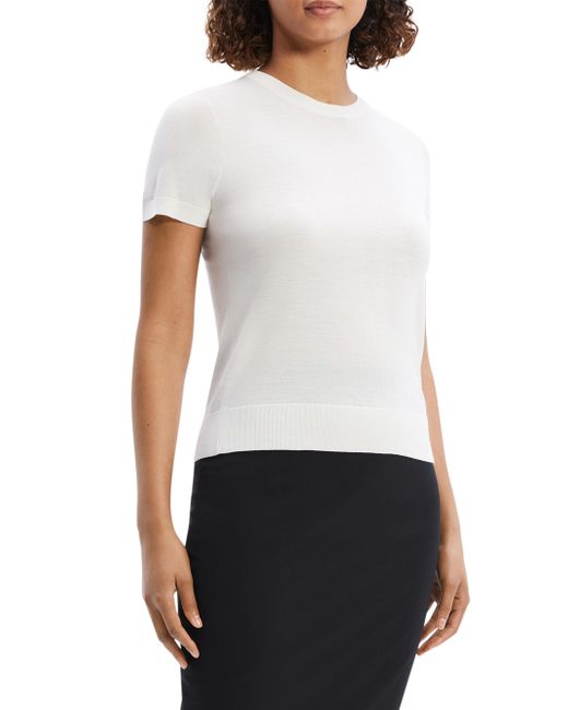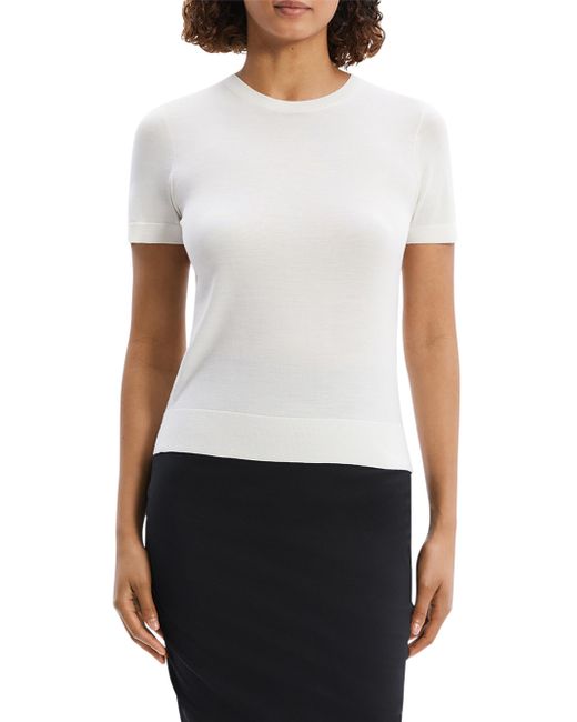 Crafted of soft merino wool, Theory's basic T-shirt showcases a timeless crewneck and short sleeves. Crewneck Short sleeves Pulls over 100% merino wool Dry clean Imported SIZE & FIT About 22" from shoulder to hem Model measurements: 5'10" tall Model is wearing a US size Small. Contemporary Sportswear - Theory Sportswear > Theory > Saks Fifth Avenue > Barneys. Theory. Color: New Ivory. Size: XS.
