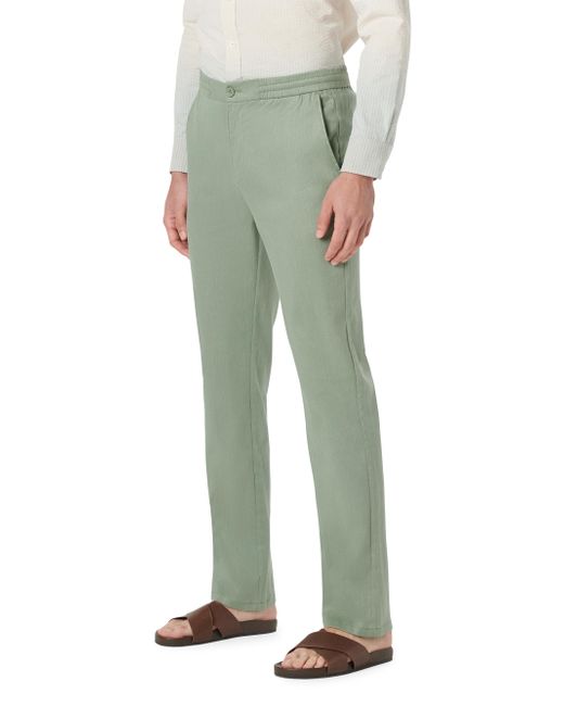 Crafted of a stretch cotton and linen, these pants from Bugatchi are styled with an elasticized waist, side slip pockets, and zip fly with button closure. Elasticized waistband Side slip pockets Back welt pockets Zip fly, button closure 54% linen/44% cotton/2% spandex Machine wash Imported SIZE & FIT Model measurements: 6'2" tall, 40" chest, 31" waist Model is wearing a US size 32. Mens Modern Coll & Outer - Contemp Classic Collecti > Bugatchi > Saks Fifth Avenue > Barneys. Bugatchi. Color: Khaki. Size: Small.