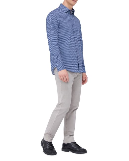 From the Ooohcotton Collection. Crafted of stretch cotton in a tonal plaid print, the James button-front shirt from Bugatchi is cut for a classic fit. A spread collar and button cuffs complete the design. Spread collar Long sleeves, button cuffs Button-front closure 92% cotton/8% spandex Dry clean Imported SIZE & FIT Model measurements: 6'2" tall, 40" chest, 31" waist Model is wearing a US size Medium. Mens Modern Coll & Outer - Contemp Classic Collecti > Bugatchi > Saks Fifth Avenue > Barneys. Bugatchi. Color: Air Blue. Size: Small.