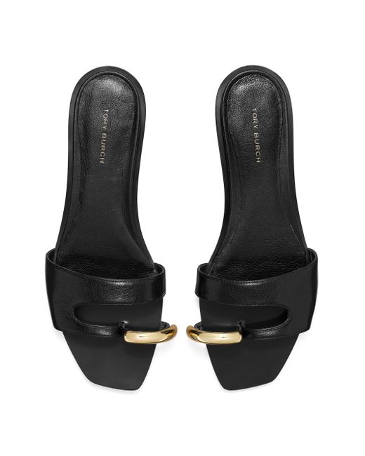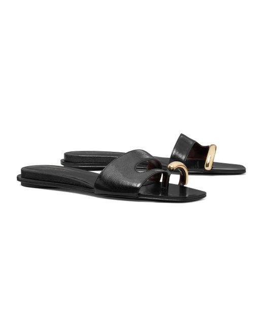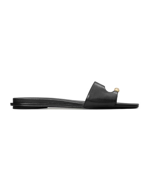 Tory Burch's Pierced sandals are crafted of sumptuous leather, offering a luxe touch to the casual slide silhouette. This slip-on style ensures effortless wearability. Open toe Slips on Leather upper Leather lining Leather sole Imported ABOUT THE BRAND Since debuting her brand in 2004, New York-based designer Tory Burch has made an impact on the fashion world with her handbags and shoes, and playful-yet-polished clothing. Today, Burch remains inspired by color and travel, with her vibrant collections bursting with prints, and her instantly recognizable double-T logo drawing from Moroccan architecture. Women's Shoes - Tory Burch Womens Shoes > Tory Burch > Saks Fifth Avenue > Barneys. Tory Burch. Color: Perfect Black. Size: 7.5.