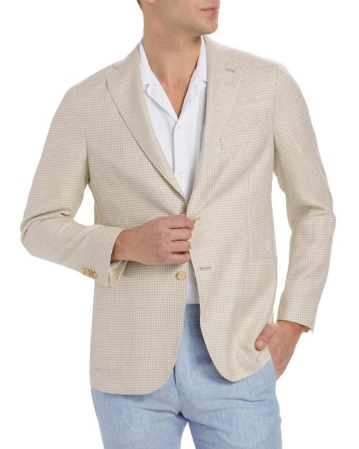 ONLY AT SAKS. Saks Fifth Avenue's houndstooth sport coat is crafted in a blend of wool for an elevated look. This tailored design features notch lapels, side patch pockets, and a two-button closure. Notch lapels Long sleeves Chest welt pocket Side patch pockets Two-button closure 68% wool/18% silk/14% linen Dry clean Made in Italy SIZE & FIT Model measurements: 6'2" tall, 40" chest, 31" waist Model is wearing a US size 40R For basic alterations and hemming, book an appointment online at your local Saks Fifth Avenue location. ABOUT THE BRAND This only-at-Saks line offers a complete wardrobe in high-quality fabrics and a classic fit. Standouts include tailored suiting, casual officewear, laid-back weekend looks and elegant evening pieces. Mens Pvt Brands - Sfamc Clothing > Saks Fifth Avenue > Saks Fifth Avenue > Barneys. Saks Fifth Avenue. Color: Cream. Size: 38.
