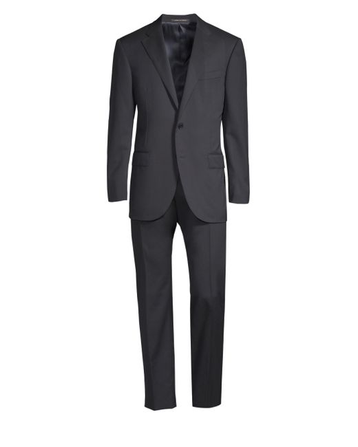 Classic suit with a stunning tailored aesthetic. Wool. Dry clean. Made in Italy. JACKET Notch lapels Long sleeves Buttoned cuffs Button front Waist flap pockets About 30" from shoulder to hem PANTS Belt loops Zip fly with button closure Front and back pleats Inseam, about 36" Leg opening, about 16" Please note this item is not hemmed. For basic alterations and hemming, book an appointment online at your local Saks Fifth Avenue location. Please note: This item runs small. We recommend ordering one size up.. Men Luxury Coll - Corneliani Clothing > Corneliani > Saks Fifth Avenue > Barneys. Corneliani. Color: Dark Blue. Size: 38.