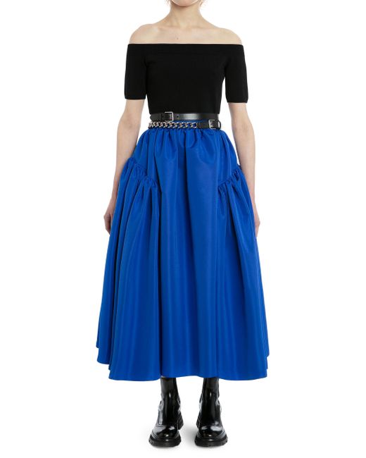 This Alexander McQueen collection celebrates female empowerment and is inspired by the anatomy of women, the regality of Queen Elizabeth I, the bold symbolism of the blood red rose, and the transgressive power of artist Magdalena Abakanowicz. It showcases a sophisticated blend of classic tailoring with sport and utility details, and the artistry of floral prints reimagined from Old Master paintings, with a strong focus on cut and proportion. Alexander McQueen's collection combines elements of science and structure, showcasing deconstructed and reconstructed tailoring in both menswear and womenswear. The collection pushes the boundaries of traditional tailoring techniques, incorporating unexpected materials and unconventional construction methods to create garments that blur the line between art and fashion. This Alexander McQueen knit top features a fitted, off-the-shoulder silhouette. Subtle rib-knit trim and pointelle detailing at the waist finish the look. Off-the-shoulder neckline Short sleeves Pulls over Viscose/polyester Dry clean Made in Italy SIZE & FIT Measurements are taken from a US size Small This style is constructed in a stretch fabric for a slim fit About 16" from shoulder to hem Model measurements: 5'10" tall Model is wearing a US size Small ABOUT THE BRAND Visionary designer Lee Alexander McQueen launched his brand in 1992, which quickly became synonymous with cutting-edge, avant-garde design. Creative Director Seán McGirr has continued the designer's legacy, bringing precision craftsmanship and a feminine vision to the label's signature edge. Advanced European - Alexander Mcqueen > Mcqueen > Saks Fifth Avenue > Barneys. McQueen. Color: Black. Size: XXS.