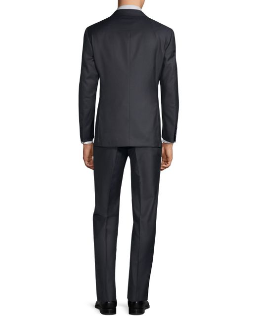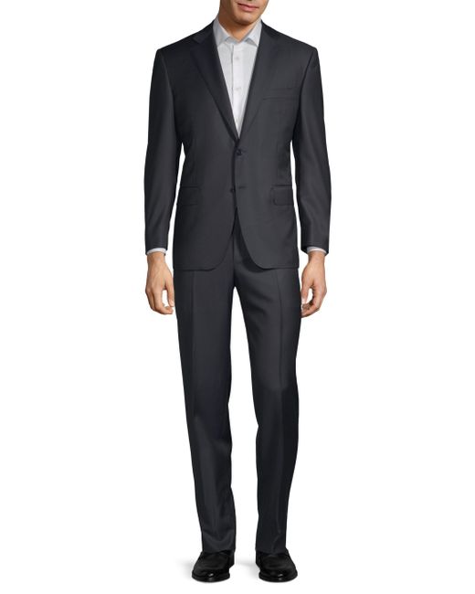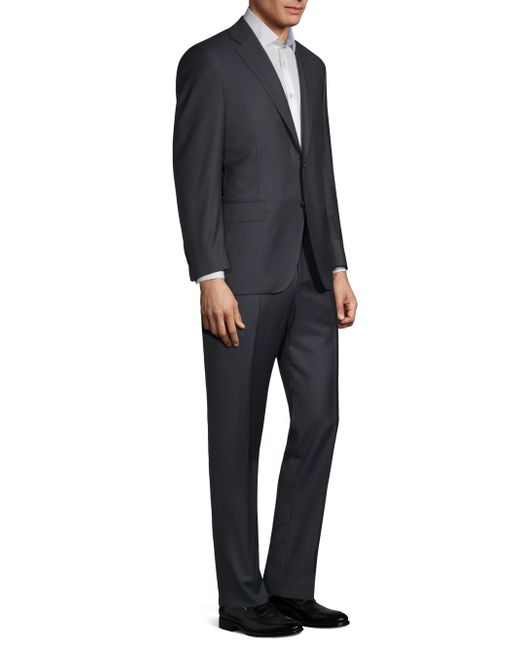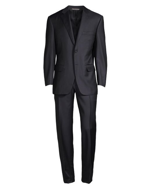 Tailored, two-piece suit cut in a regular fit. Wool. Dry clean. Made in Italy. JACKET Notch lapels Long sleeves Buttoned cuffs Button front Chest welt pocket Waist flap pockets Dual back vents Lined About 30" from shoulder to hem PANTS Zip fly with button closure Rise, about 10" Inseam, about 36" Leg opening, about 16" Please note this item is not hemmed. For basic alterations and hemming, book an appointment online at your local Saks Fifth Avenue location. Please note: This item runs small. Men Luxury Coll - Canali Clothing > Canali > Saks Fifth Avenue > Barneys. Canali. Color: Navy. Size: 38.