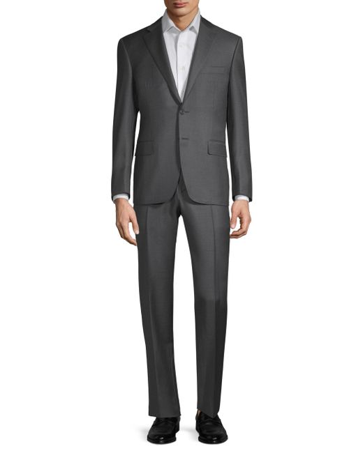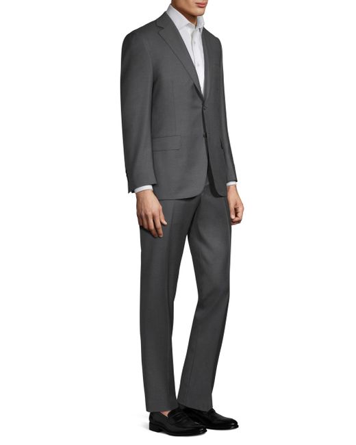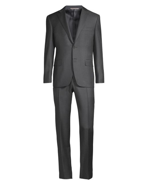 Sophisticated suit with expertly tailored details. Cupro. Dry clean. Made in Italy. JACKET Notch lapels Long sleeves Button cuffs Button front Chest welt pocket Waist flap pockets About 30" from shoulder to hem PANTS Belt loops Zip fly with hook-and-bar closure On-seam pockets Back welt pockets Rise, about 10" Inseam, about 36" For basic alterations and hemming, book an appointment online at your local Saks Fifth Avenue location. Please note: This item runs small. Men Luxury Coll - Canali Clothing > Canali > Saks Fifth Avenue > Barneys. Canali. Color: Charcoal. Size: 50.