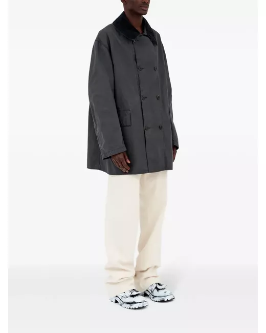 blue cotton front button fastening long sleeves two side flap pockets internal logo patch