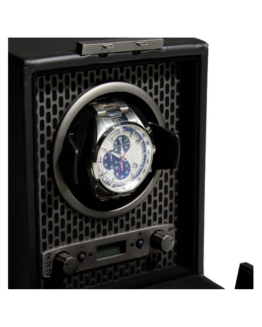 Powder-coated laser cut perforated steel melded with clean, sleek lines, AXIS drives a modern, bold look for safekeeping your timepieces. Our patented technology of counting rotations of the axis of your watch guarantees precise turns per day. Locking glass cover Backlit LCD display Rose goldtone hardware Single winding module Microsuede interior Steel/leather/glass Imported SIZE 8.75"W x 6.75"H x 5.5"D. Home - Frames And Leather Acces > Wolf > Saks Fifth Avenue > Barneys. Wolf. Color: Powder Coat.