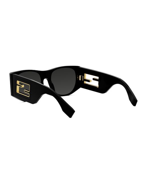 Fendi's sunglasses flaunt an openwork baguette logo highlighted by a metal rim. 100% UV protection Solid lenses Oval Acetate Made in Italy SIZE & FIT 54MM lens width 18MM bridge width 145MM lens width. Soft Accessories - Sunglasses > Fendi > Saks Fifth Avenue > Barneys. Fendi. Color: Black.