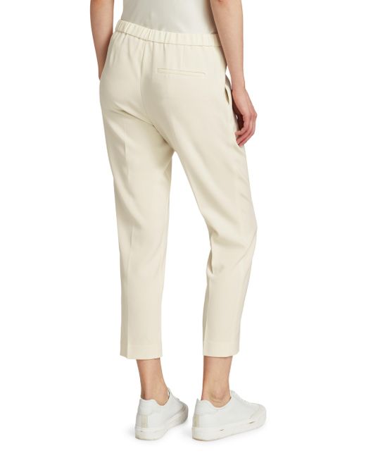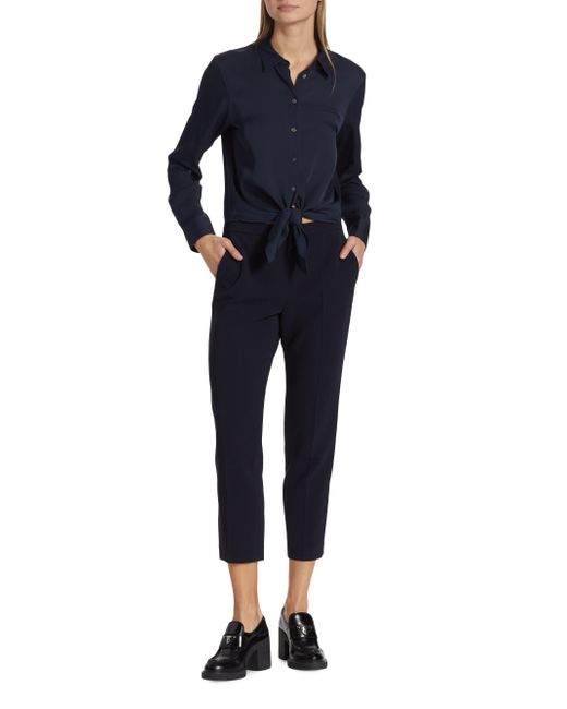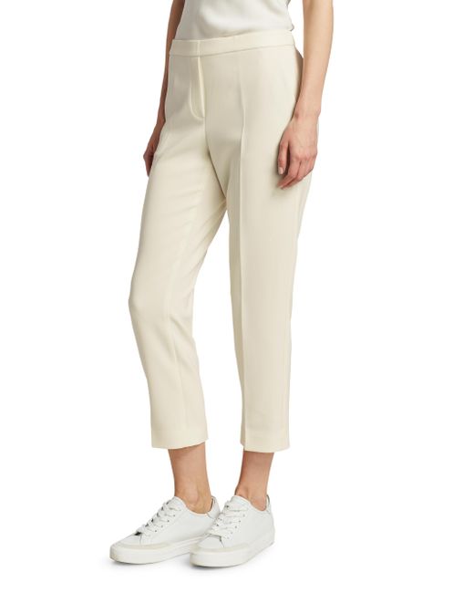 Theory's Treeca trousers are cropped at the ankle creating a tapered silhouette. Fitted with a banded pull-on waist, this style features a soft crepe finish. Banded waist Mock fly Side slash pockets Back mock welt pocket Front and back pleats Triacetate/polyester Dry clean Imported SIZE & FIT This style is constructed in a stretch fabric for a tailored fit Rise, about 11.5" Inseam, about 26" Waist, about 28: Model measurements: 5'10" tall Model is wearing a US size 4 Please note: This item runs large. ABOUT THE BRAND In 2000, founders Andrew Rosen and Elie Tahari launched Theory with a focus on innovative, comfortable stretch pants for women. Since then, the New York-based brand has become well-known for its mastery of polished, well-tailored separates for women and men. Contemporary Sportswear - Theory Sportswear > Theory > Saks Fifth Avenue > Barneys. Theory. Color: Black. Size: 00.