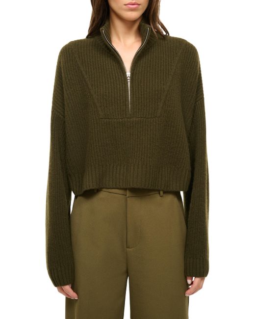 Crafted of a cashmere rib-knit, the Hampton cropped sweater from Staud is styled with a mock-turtleneck, long sleeves, and front half-zip closure. Mock turtleneck Long sleeves, rib-knit cuffs Rib-knit hem Front half-zip closure 100% cashmere Dry clean Imported SIZE & FIT About 19.5" form shoulder to hem Model measurements: 5'10" tall Model is wearing a US size Small. Contemporary Sportswear - Contemporary Collections > Staud > Saks Fifth Avenue > Barneys. Staud. Color: Olive. Size: Large.