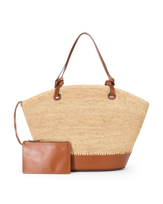 Crafted of raffia, this Squillo tote bag from Staud is designed with leather trim and an interior zip pouch. Two top handles Interior: one zip pouch Raffia Trim: leather Imported SIZE About 26.7"W x 15"H x 7"D Two top handles: about 8.2" drop. Handbags - Collection Handbags > Staud > Saks Fifth Avenue > Barneys. Staud. Color: Natural Tan.