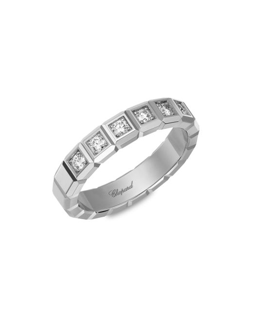 From the Ice Cube Collection. Inspired by tiny blocks of ice, this modern geometric ring is crafted of 18K white gold set with 11 sparkling white diamonds. Diamonds, 0.38 tcw 18K white gold Made in Switzerland ABOUT THE BRAND In 1860, artisan watchmaker Louis-Ulysse Chopard founded the renowned jewelry brand in Sonvilier, Switzerland. The company is known for its legendary Swiss watches and classic high fine jewelry designed to last a lifetime. Fine Jewelry - Chopard Watches And Jewe > Chopard > Saks Fifth Avenue > Barneys. Chopard. Color: White Gold. Size: 6.