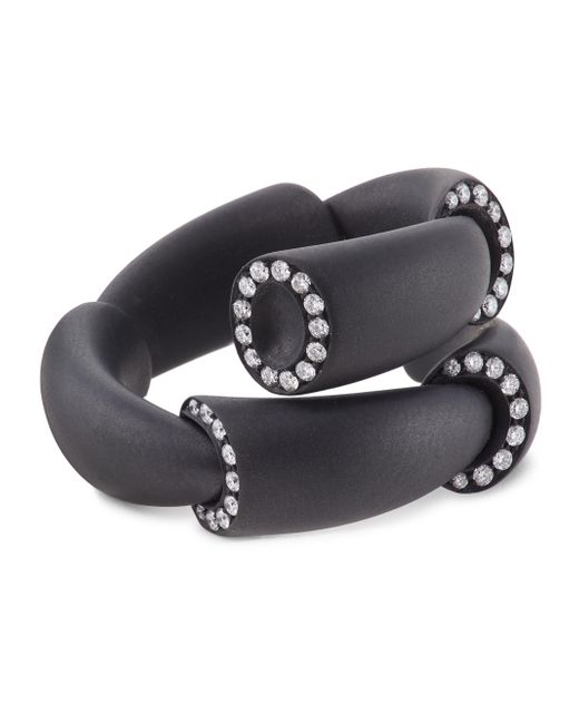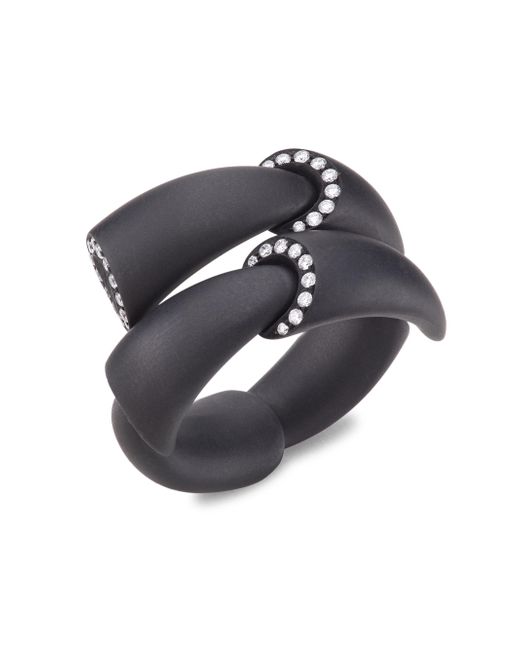 From the Calla Collection. Textured styling elevates this statement ring, crafted in titanium with subtle diamond pavé for shine. Diamonds, 0.34 tcw Diamond color, E-F Diamond clarity, VVS Black titanium Made in Italy SIZE Diameter, about 0.75". Fine Jewelry - Designer Jewelry A > Vhernier > Saks Fifth Avenue > Barneys. Vhernier. Color: Black Titanium. Size: 6.
