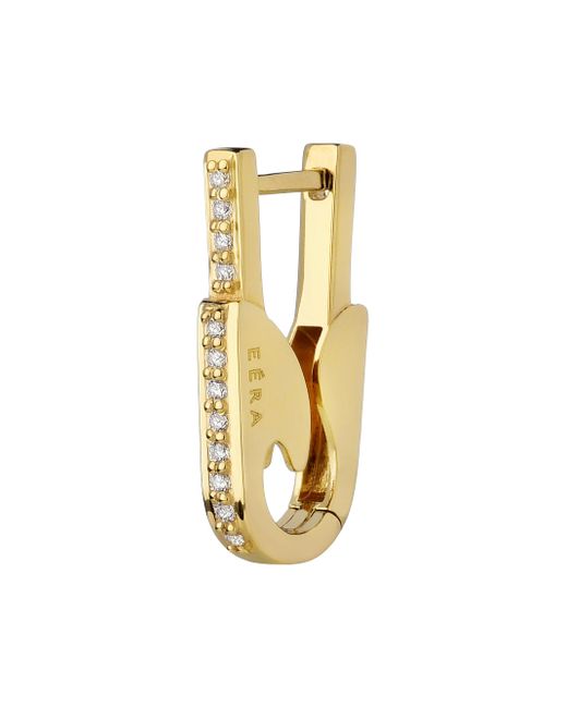 Featuring a safety-pin-inspired silhouette, EÉRA's small drop earring is crafted of polished 18K white gold pavé-set with glittering white diamonds. Diamonds, 0.12 tcw 18K white gold Hinged snap clasp Made in Italy SIZE Drop, about 0.83" Width, about 10mm. Fashion Jewelry - Fashion Designer > Eéra > Saks Fifth Avenue > Barneys. Eéra. Color: Yellow Gold.