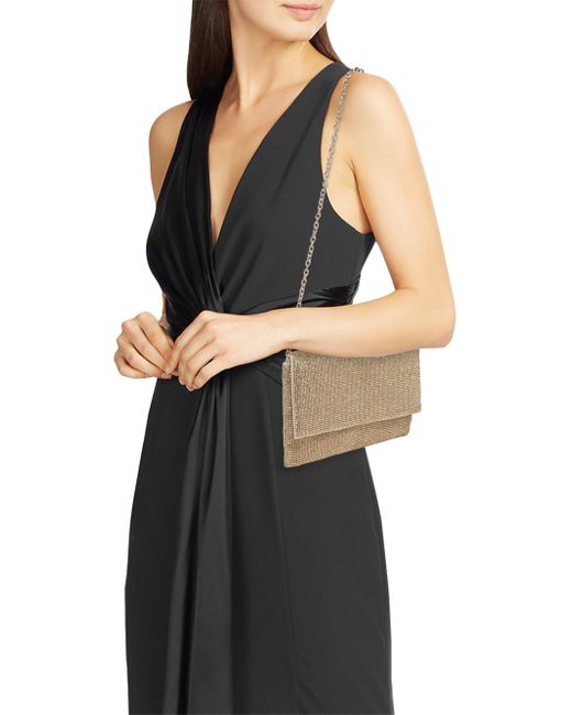 The Gemma mesh clutch from Whiting & Davis is designed with a removable chain strap and a magnetic closure. Removable chain strap Interior: one slip pocket Magnetic closure Brass Imported SIZE About 8.75"W x 5.25"H x 1.25"D Removable chain strap: about 14". Handbags - Contemporary Handbags > Whiting & Davis > Saks Fifth Avenue > Barneys. Whiting & Davis. Color: Gold.
