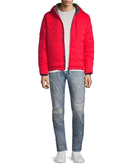 Be prepared for all the elements in this water-resistant, warm and windproof nylon hooded jacket with down fill, which conveniently packs up into a travel-friendly pillow for on-the-go style. Attached hood Zip front Long sleeves Zippered chest pocket Side zip pockets Packs into interior pocket Duck down fill Nylon Machine wash Made in Canada SIZE & FIT Slim fit About 30" from shoulder to hem Please note: This item runs small. ABOUT THE BRAND Since its launch in 1957, Canada Goose's durable, ultra-warm parkas have become cold-weather staples worldwide. Using strong technical fabric, sustainably sourced down insulation and fur trim, the coats are designed to withstand extreme temperatures. Adapting to all seasons, the label designs luxe lightweight jackets, vests and accessories-and even cozy knit layers. Mens Modern Coll & Outer - Canada Goose > Canada Goose > Saks Fifth Avenue > Barneys. Canada Goose. Color: Ozone Blue. Size: Medium.