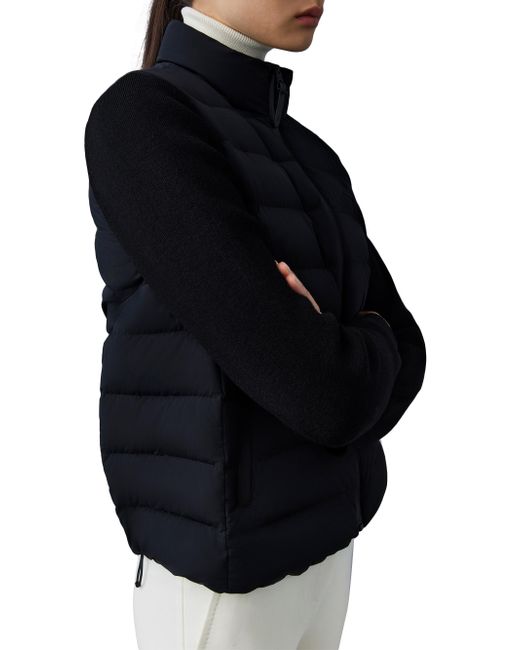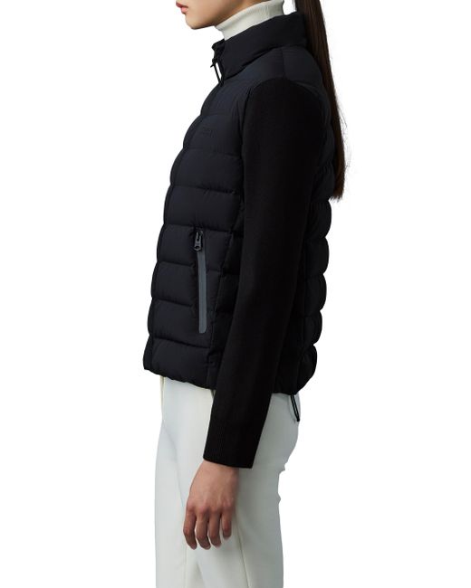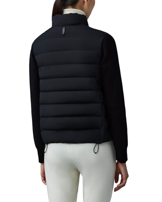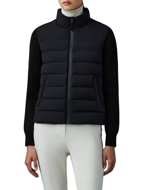 Mackage's Oceane jacket spotlights a nylon puffer bodice contrasted by wool-blend sleeves. This mixed-media style is complete with a tonal logo detail at the chest and warm down filling. Stand collar Logn sleeves, ribbed cuffs Side-zip pockets Front-zip closure 82% nylon/18% elastane Combo: 42% wool/42% acrylic/14% polyester/2% elastane Filling: 90% angora shed duck down/10% duck waterfowl feathers Machine wash Imported SIZE & FIT About 22" from shoulder to hem Model measurements: 5'10" tall Model is wearing a US size Small ABOUT THE BRAND Founded in Montreal in 1999, Mackage began as a comprehensive outerwear brand offering everything from fine leather jackets to tailored wool coats and down parkas. The label evolved to develop superior construction and comfort, creating flattering and elegant silhouettes. Mackage is committed to quality and performance with an eye toward aesthetic innovation in its women's, men's and kids' designs. Outerwear And Swimwear - Down > Mackage > Saks Fifth Avenue > Barneys. Mackage. Color: Black. Size: Small.