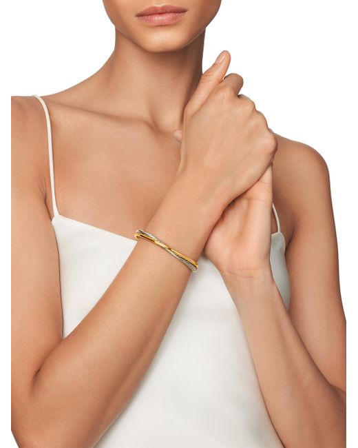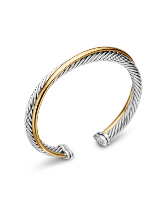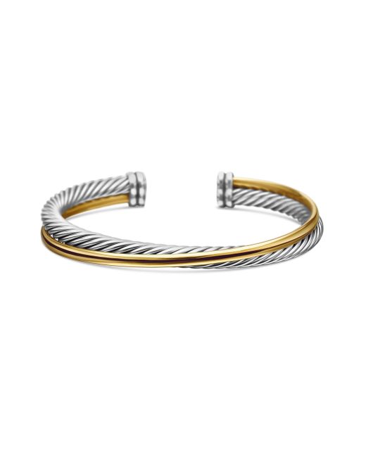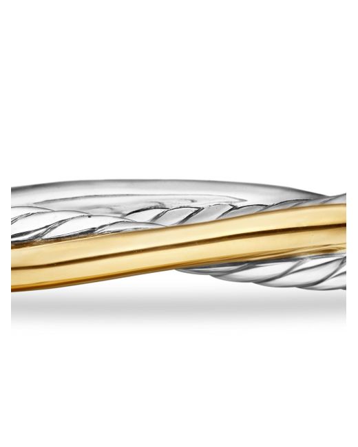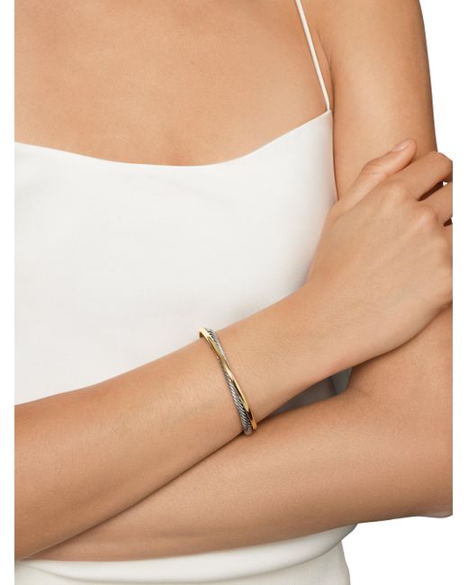 From the Crossover Collection. The DY Crossover Collection explores the rhythmic weaving of line to create form and movement. Using a dynamic range of smooth and cabled cords, the individual strands are meticulously entwined. Sterling Silver with 18K Yellow Gold Imported SIZE Bracelet width, 5mm Small, 5.5'' to 6'' Medium, 6'' to 6.5'' Large, 6.5'' to 7'' Please note: If you are between sizes, please opt for the larger size. ABOUT THE BRAND David, a sculptor, and his wife, Sybil, a painter, launched their innovative jewelry brand in 1980 in New York City. Since then, the American design house has pioneered cutting-edge collections - from its iconic combination of sterling silver and diamonds to signature pinky rings. Today, with their son Evan, the Yurmans continue to deliver timeless pieces inspired by nature, art, ancient symbols and Manhattan's stunning architecture. Lsd Jewelry - David Yurman > David Yurman > Saks Fifth Avenue > Barneys. David Yurman. Color: Silver. Size: Medium.