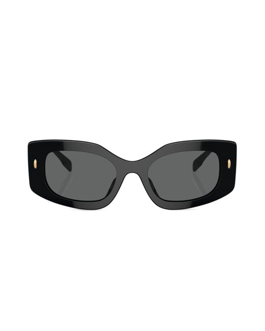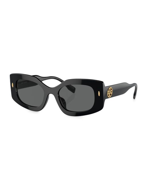 Tory Burch's sunglasses boast a modern rectangular shape and an acetate frame. This pair features solid UV-protective lenses and the label's iconic logo at the temples. 100% UV protection Solid lenses Acetate Made in Italy SIZE 50mm lens width 19mm bridge width 145mm temple length. Soft Accessories - Sunglasses > Tory Burch > Saks Fifth Avenue > Barneys. Tory Burch. Color: Black Dark Grey.