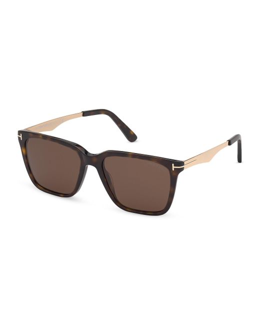 Designed with a timeless square silhouette, Tom Ford's sunglasses feature logo hardware at the temple. 100% UV protection Solid lenses Case and cleaning cloth included Acetate Made in Italy SIZE 54mm lens width 17mm bridge width 145mm temple length ABOUT THE BRAND After 10 years of serving as the Creative Director for several international luxury fashion houses, Tom Ford launched his own line of optical frames, sunglasses and grooming in 2005. The following year he debuted menswear, and in 2010, women's ready-to-wear. His sleek, tailored aesthetic has since catapulted him to mega-brand status. Soft Accessories - Men Sunglasses > Tom Ford > Saks Fifth Avenue > Barneys. TOM FORD. Color: Havana.