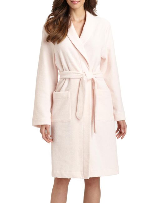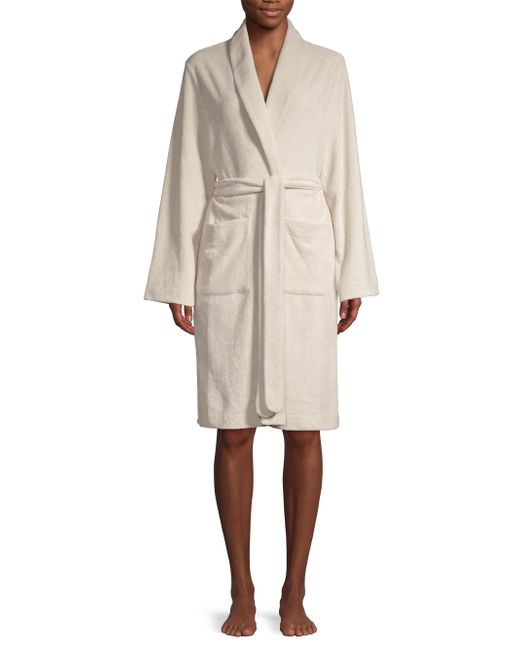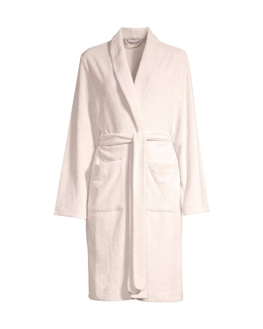 Plush terry layering essential with convenient patch pockets and a shawl collar. Shawl collar V-neck Long sleeves Drop shoulder Self-tie waist with belt loops Front patch pockets About 39.5" from shoulder to hem Polyester/cotton Machine wash Made in Portugal of imported fabric. Lingerie - Hanro > Hanro > Saks Fifth Avenue > Barneys. Hanro. Color: Light Pink. Size: XS.