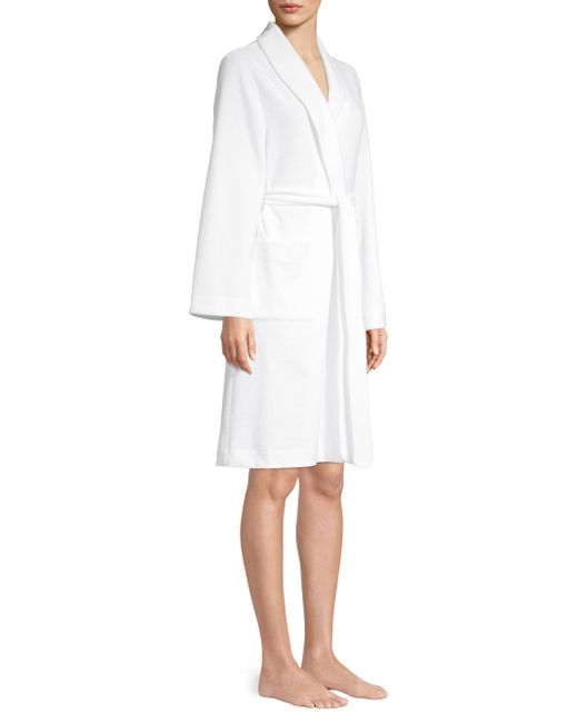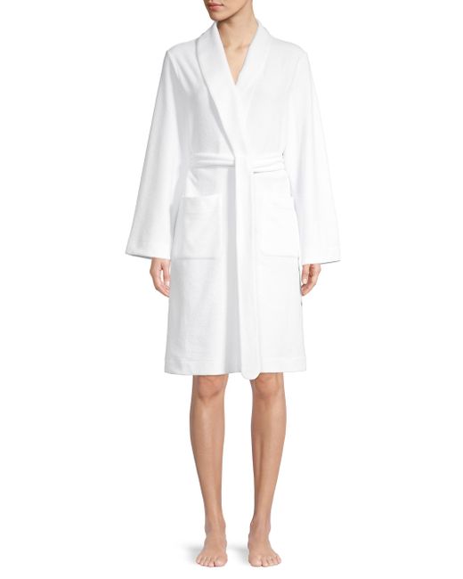 Plush terry layering essential with convenient patch pockets and a shawl collar. Shawl collar V-neck Long sleeves Drop shoulder Self-tie waist with belt loops Front patch pockets About 39.5" from shoulder to hem Polyester/cotton Machine wash Made in Portugal of imported fabric. Lingerie - Hanro > Hanro > Saks Fifth Avenue > Barneys. Hanro. Color: White. Size: XS.