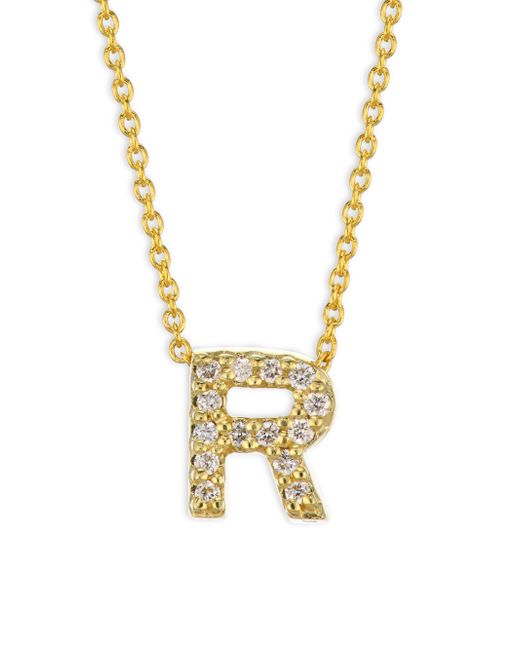 From the Tiny Treasures Collection. Gleaming gold chain centered with pavé diamond initial pendant Diamonds, 0.03 tcw 18K yellow gold Lobster clasp Made in Italy SIZE Length, about 16" ABOUT THE BRAND Jewelry designer Roberto Coin founded his eponymous line in 1996, with a strong emphasis on elegance and creative experimentation. Each piece is the result of a long creative process, taking inspiration from cultural influences and nature. Fine Jewelry - Roberto Coin Asset > Roberto Coin > Saks Fifth Avenue > Barneys. Roberto Coin. Color: Initial R.