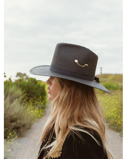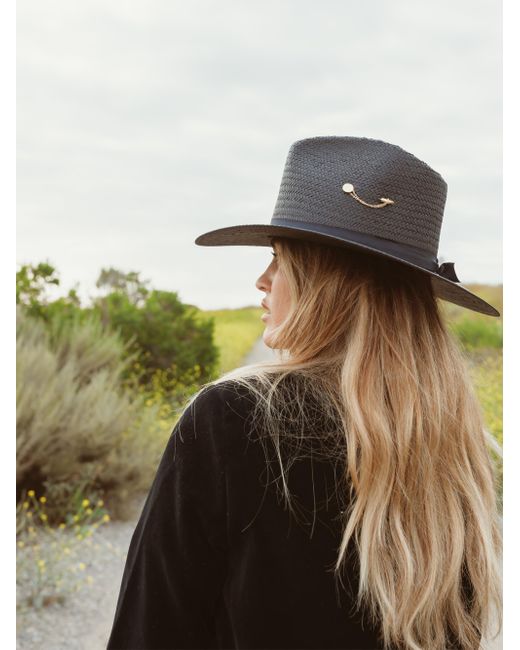 From the Wanderer Collection. Made of a unique packable straw and accented with a hand-dyed ombré silk ribbon and a traditional goldtone hat pin, this Freya fedora combines timeless style with modern convenience. Straw Spot clean Made in USA SIZE Brim: about 3.5"W Crown: about 4.25"H. Soft Accessories - Millinery > Freya > Saks Fifth Avenue > Barneys. Freya. Color: Black. Size: Small.