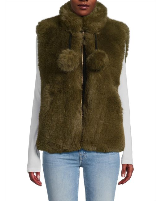 Finished in soft faux fur, Moose Knuckles' Ruby vest showcases a pop-pom accent for a playful touch. Shawl collar Sleeveless Front zip closure 100% polyester Fur type: faux Dry clean Imported SIZE & FIT About 24.5" from shoulder to hem Model measurements: 5'10" tall Model is wearing a US size Small ABOUT THE BRAND Moose Knuckles' luxe parkas are designed to withstand extreme temps. Founded in 2007, the Canadian outerwear brand melds function with fashion. The handcrafted, fur-trimmed jackets are designed to protect from wind and water, with down insulation for maximum warmth. Plus, the brand boasts cozy hats and gloves to finish your cold-weather look. Outerwear And Swimwear - Down > Moose Knuckles > Saks Fifth Avenue > Barneys. Moose Knuckles. Color: Moss. Size: XS.
