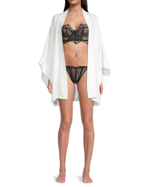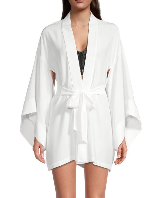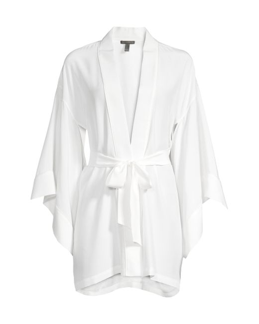 From the Muse Collection. This silk robe is designed with kimono-inspired sleeves. Shawl collar Long sleeves Tie-waist 100% silk Dry clean Made in Canada SIZE & FIT About 35" from shoulder to hem Model measurements: 5'10" tall Model is wearing a US size Small. Lingerie - Designer Foundations > Kiki De Montparnasse > Saks Fifth Avenue > Barneys. Kiki de Montparnasse. Color: Ivory. Size: XS.