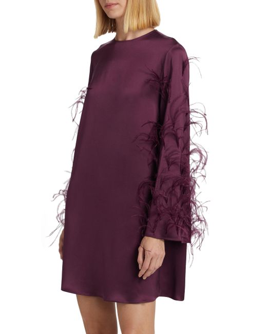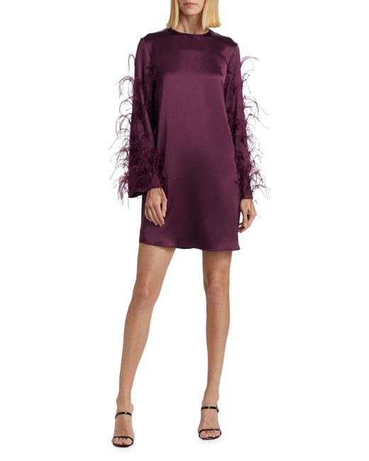 Crafted of satin, this shift dress from LaPointe is decorated with feathers. The mini-length piece features a round neck, long sleeves, and a back zip closure. Round neck Long sleeves Straight hem Back zip closure 61% acetate/39% viscose Dry clean Imported SIZE & FIT Model measurements: 5'10" tall Model is wearing a US size 4. Designer Lifestyle - Designer Lifestyle Sport > Lapointe > Saks Fifth Avenue > Barneys. LaPointe. Color: Mulberry. Size: XS.