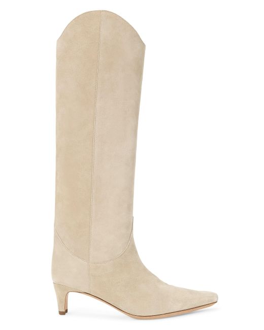 The Wester Wally boots by STAUD are crafted of supple suede and highlight a pointed-toe silhouette. Leather upper Pointed toe Pulls on Leather/ ABS sole Made in Portugal SIZE Kitten heel, about 1.8" (45mm) This brand fits slightly smaller. Consider ordering half a size up. Women's Shoes - Workshop Shoes > Staud > Saks Fifth Avenue > Barneys. Staud. Color: Dune. Size: 5.5.
