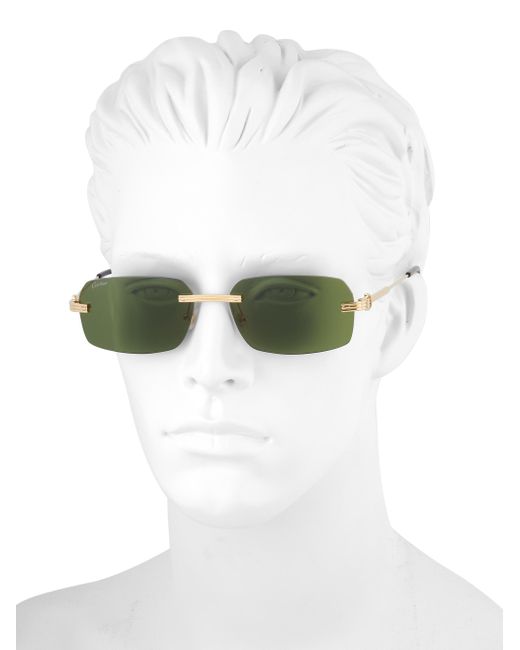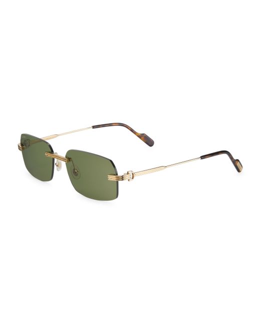 From the Core Range Collection. Rectangular rimless shape in a new bolder construction for vintage appeal. 100% UV protection Solid lenses Cartier logo lasered on metal temple tips Double C Décor signature on the yesse pads Case and cleaning cloth included Metal Made in France SIZE 58mm lens width 17mm bridge width 145mm temple length. Soft Accessories - Men Sunglasses > Cartier > Saks Fifth Avenue > Barneys. Cartier. Color: Gold Green.